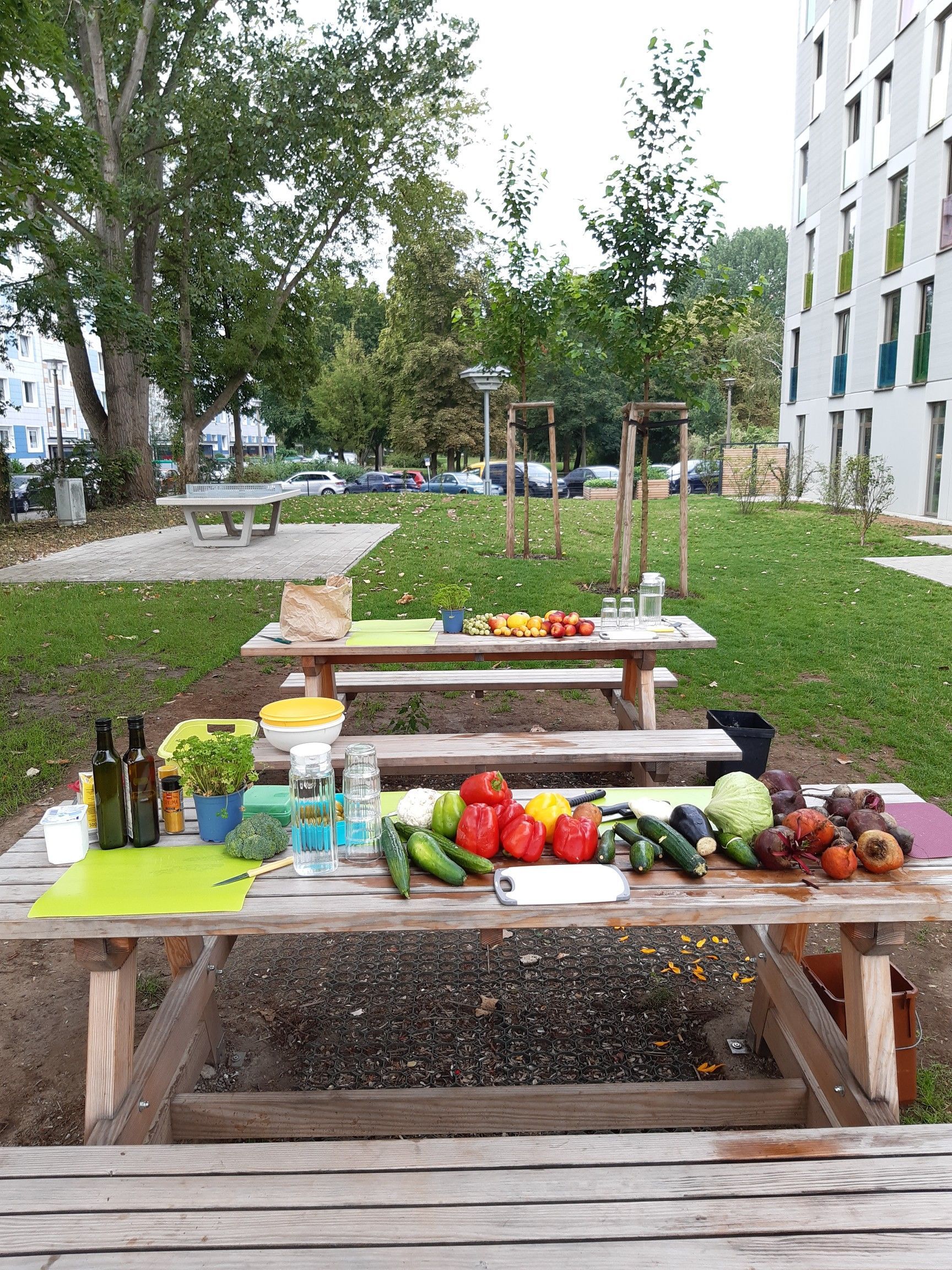 Gemeinsame Koch-Workshops mit geretteten Lebensmitteln - fachkundig angeleitet von Essensretterin Catrin Bechimer.